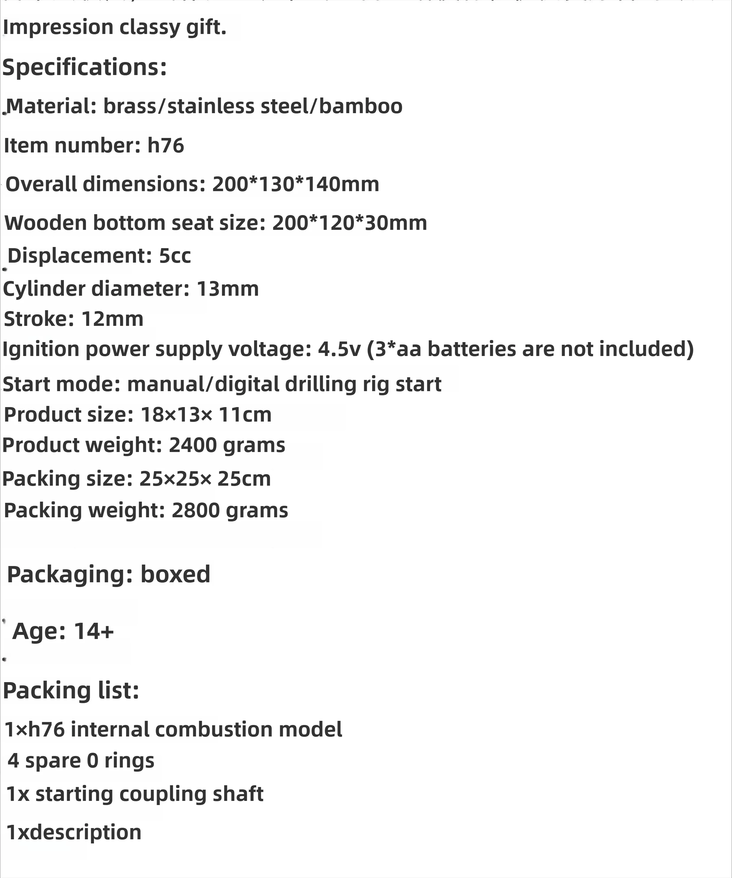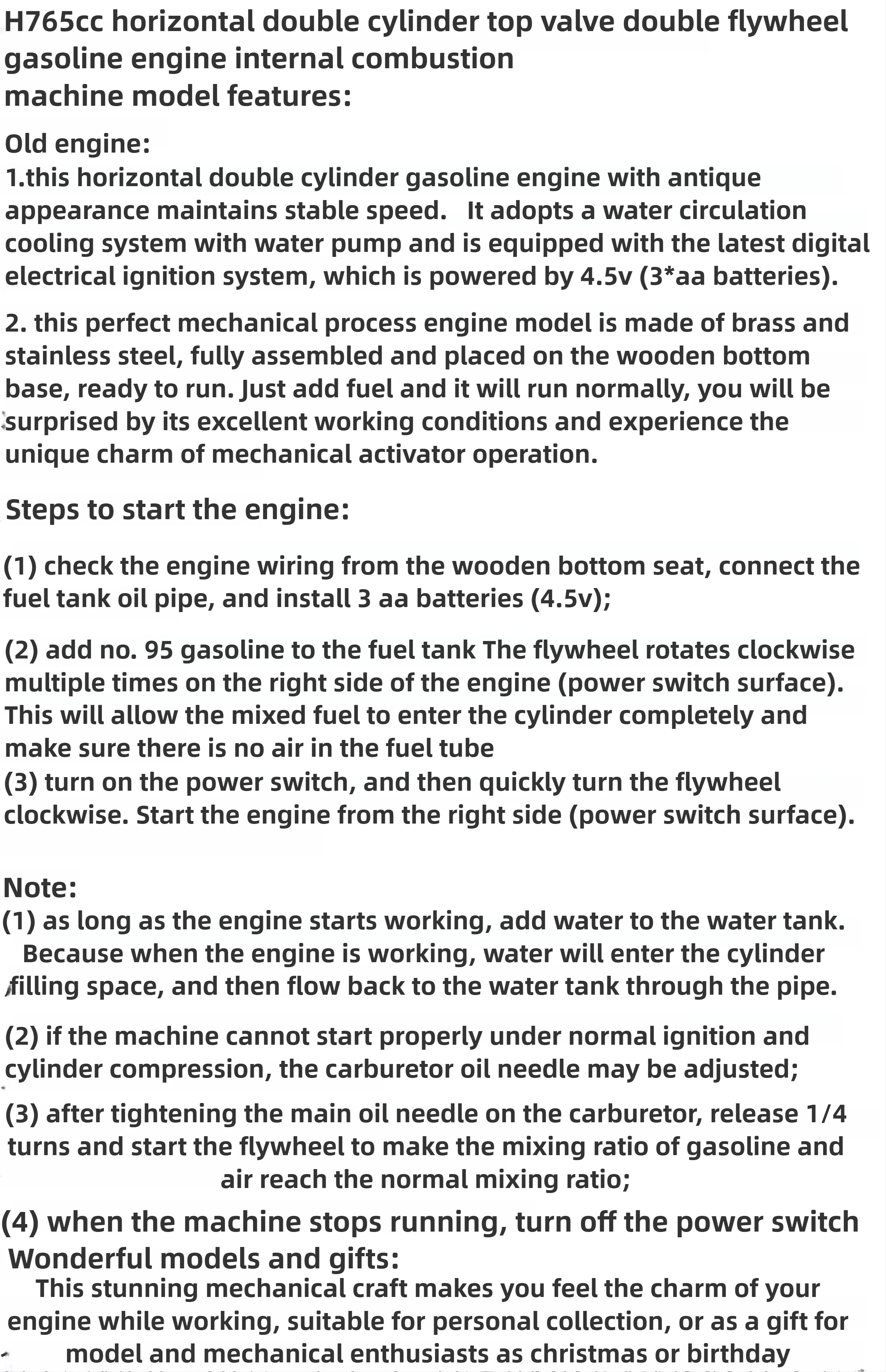 H76 Horizontal Twin Cylinder Engine Model Stainless Steel Brass Engine Mechanical Collection