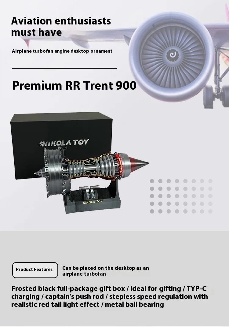 Nikolatoy Rrtrent 900 Aircraft Turbofan Engine Model Speed Control Tail Flame Lamp Effect Vortex Jet Desktop Ornament